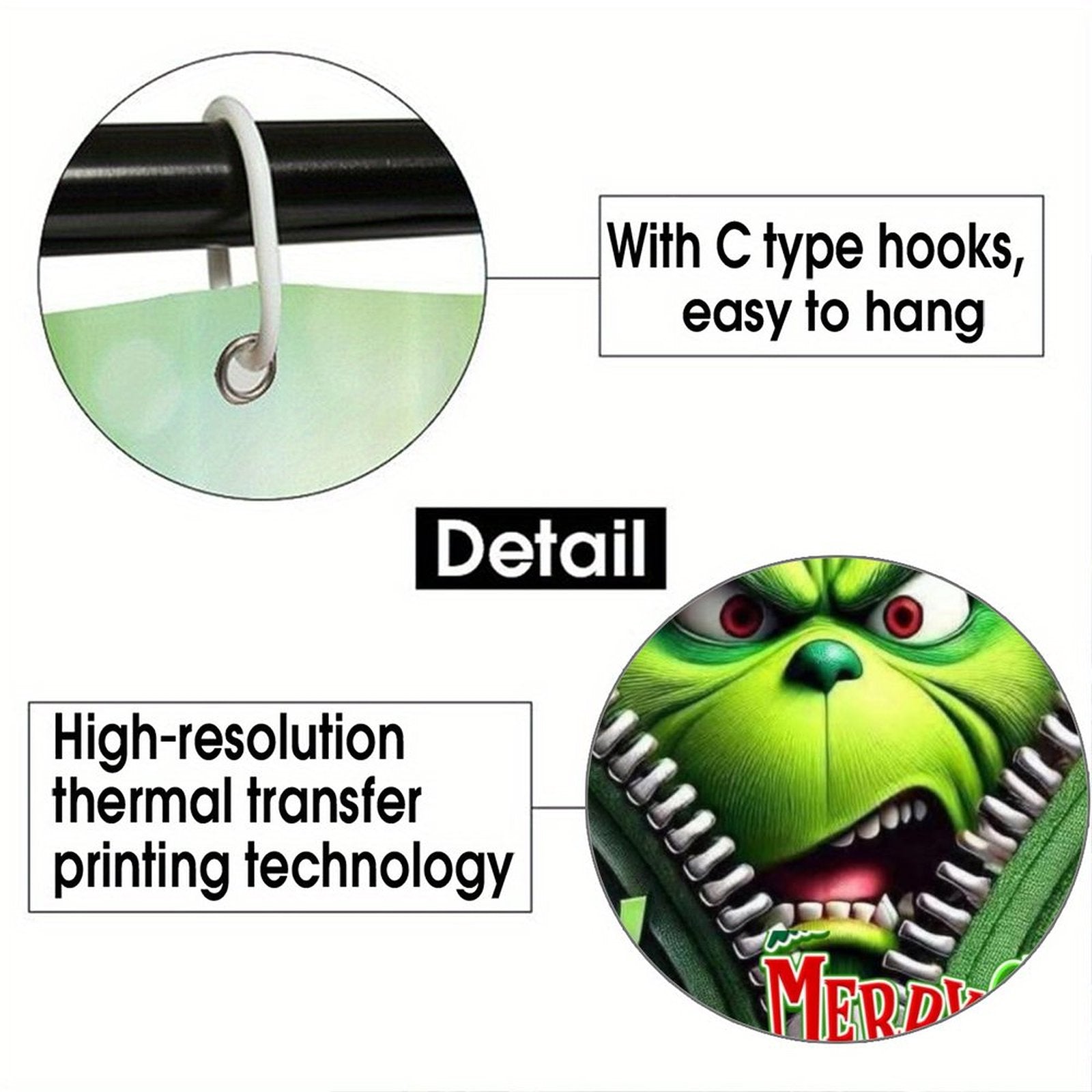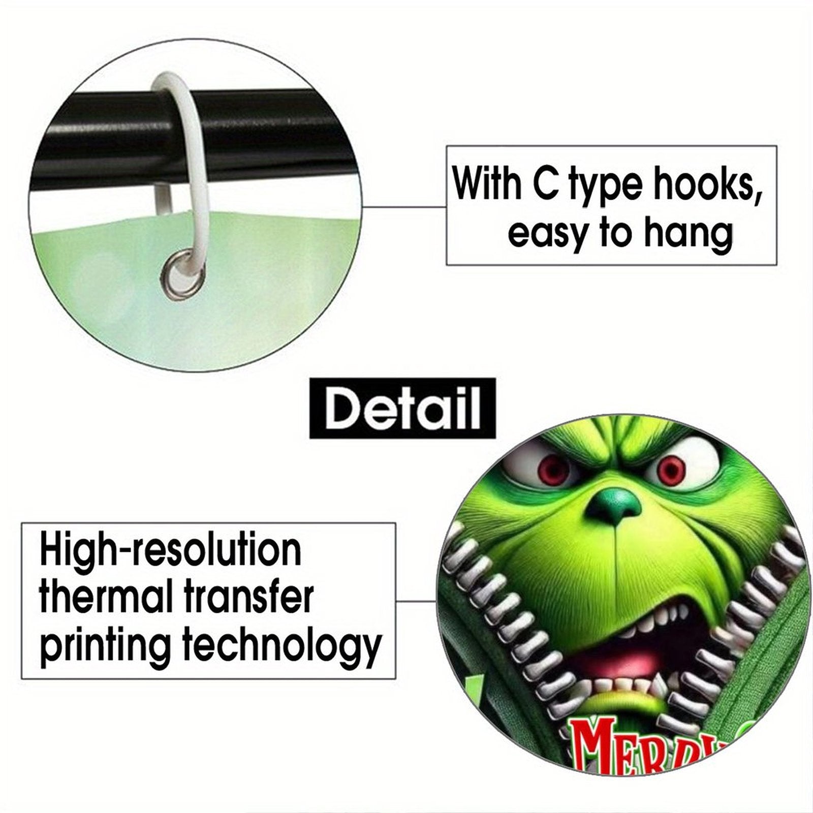 Get ready to bring some cynical, yet festive, cheer to your bathroom this holiday season! This unique shower curtain features a striking, vivid image of the Grinch, peeking angrily out of a zipper, perfect for those who are "Bah Humbug" until the very last minute. The bold text "EWW PEOPLE MERRY CHRISTMAS" captures that perfectly grumpy holiday spirit with a touch of humor.