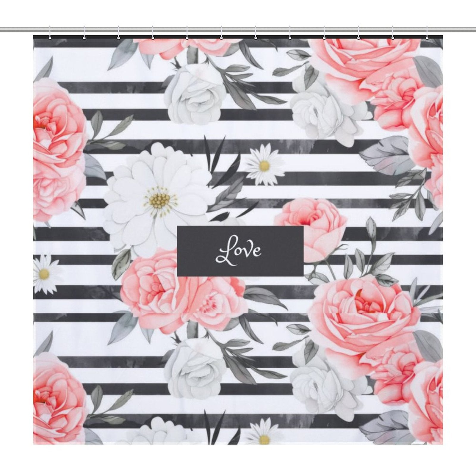 Floral Love Shower Curtain | Elegant Bathroom Decor, Gift for Home Lovers, Wedding, Modern Style, Floral Theme, Romantic Bathroom Accent