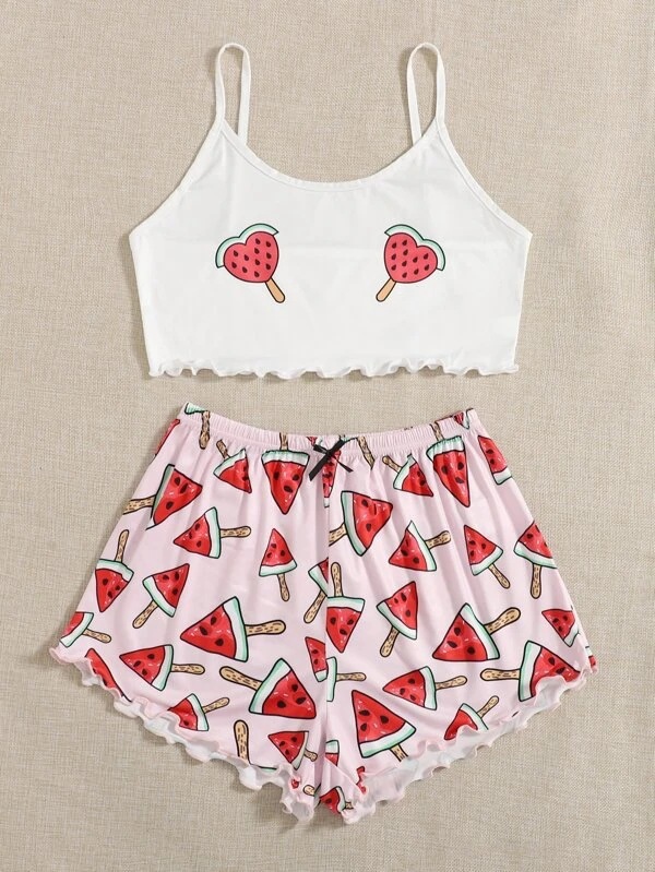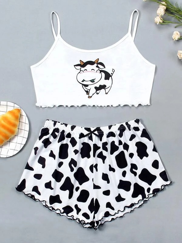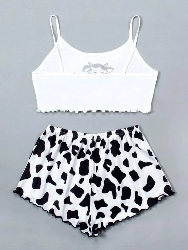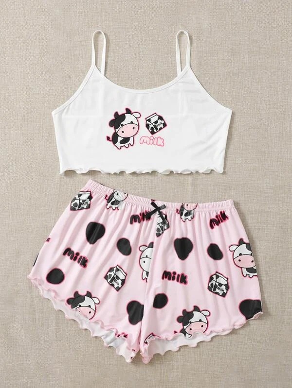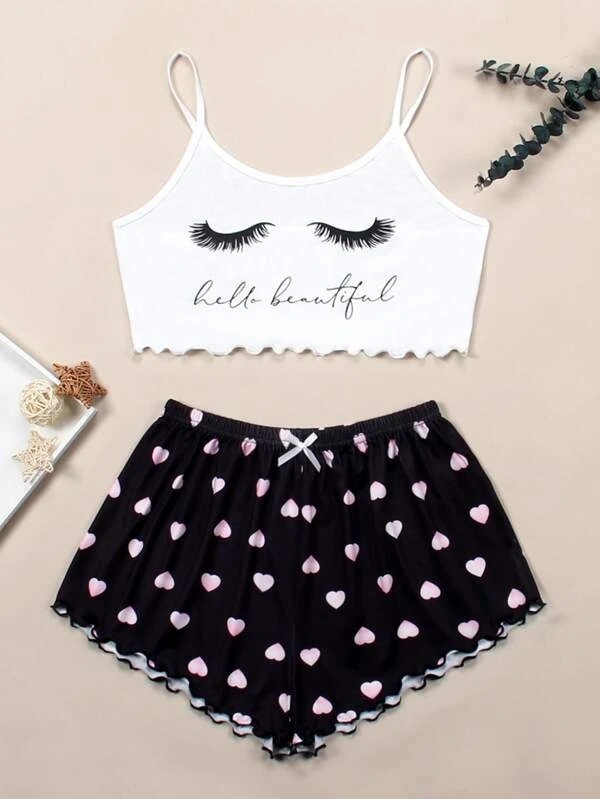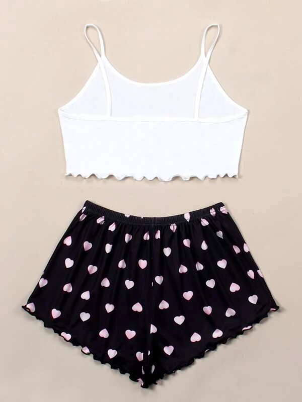 Knitted Print Pajama Set for Women – Thin Comfy Cami Top & Shorts Loungewear