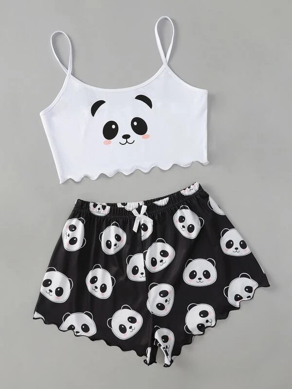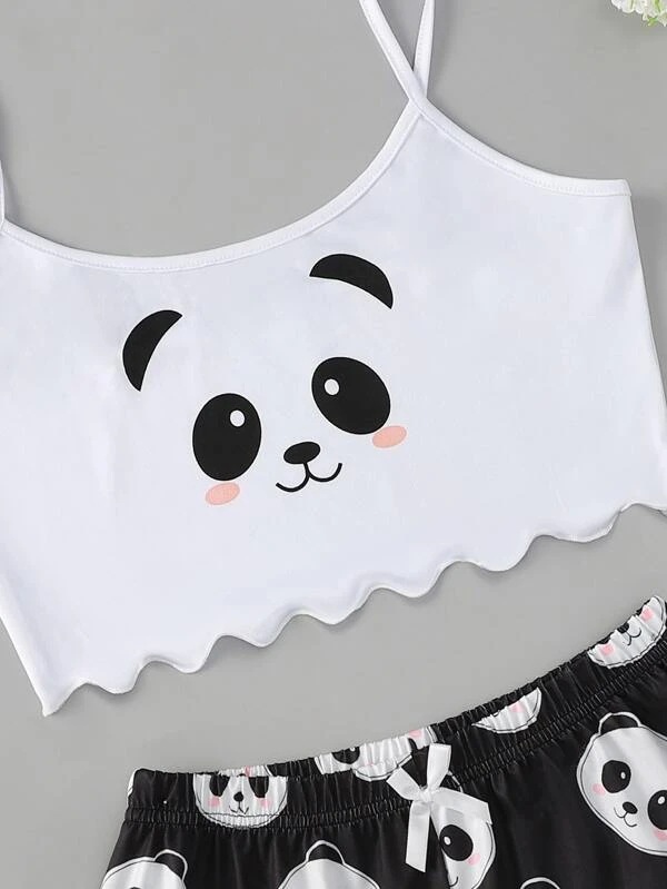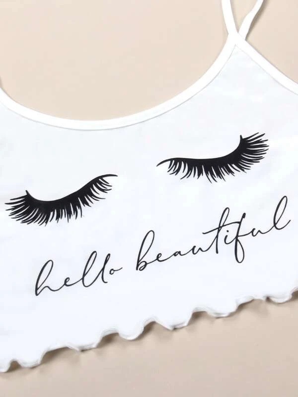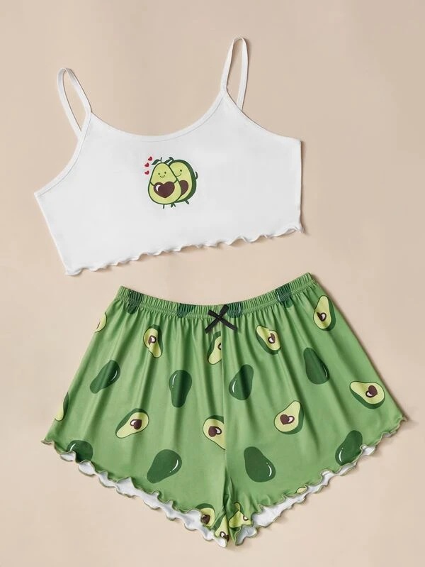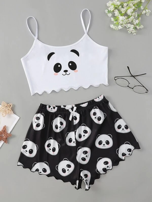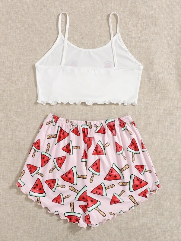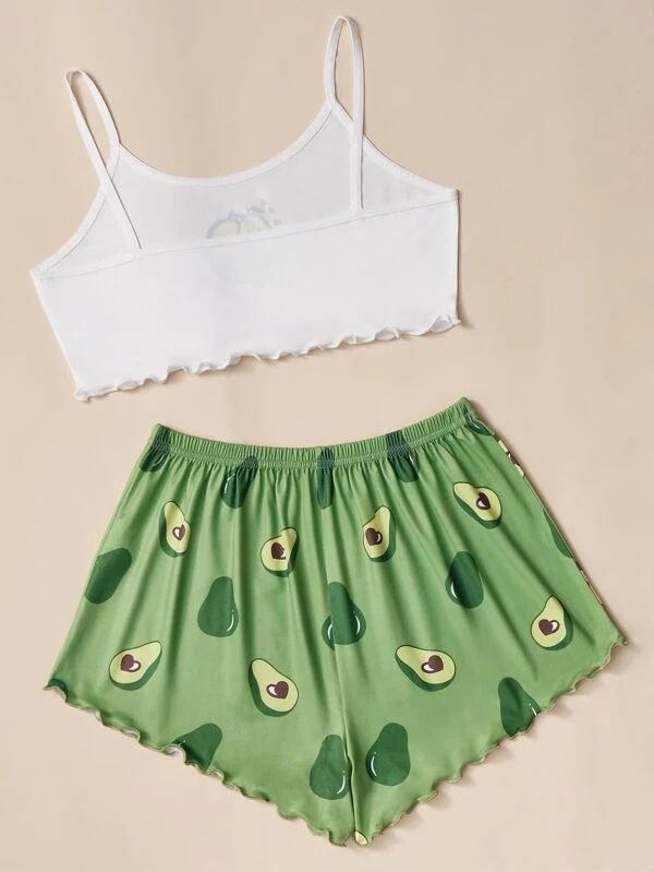 Knitted Print Pajama Set for Women – Thin Comfy Cami Top & Shorts Loungewear