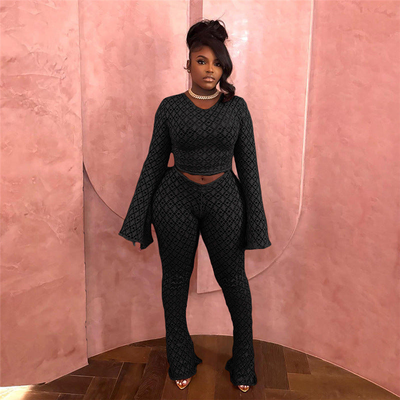 Turn heads and own the spotlight in this Sexy Ripped Bare Midriff High Waist Trousers Suit for Women . This bold two-piece outfit features a daring cropped top with edgy ripped details paired with flattering high waist trousers that sculpt and highlight your curves perfectly.