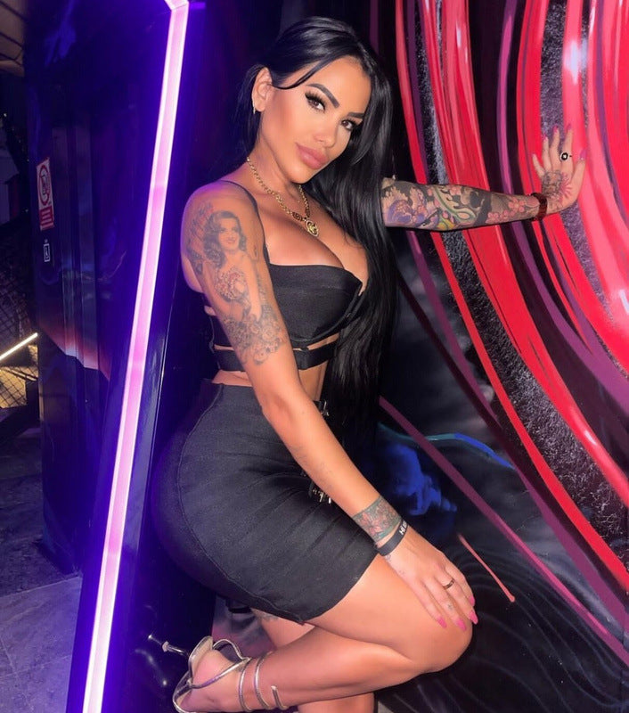 Sexy Spaghetti-Strap Camisole Top & Belt Buckle Miniskirt Set – Trendy Two-Piece Midriff Outfit for Women | Streetwear Clubwear Fashion