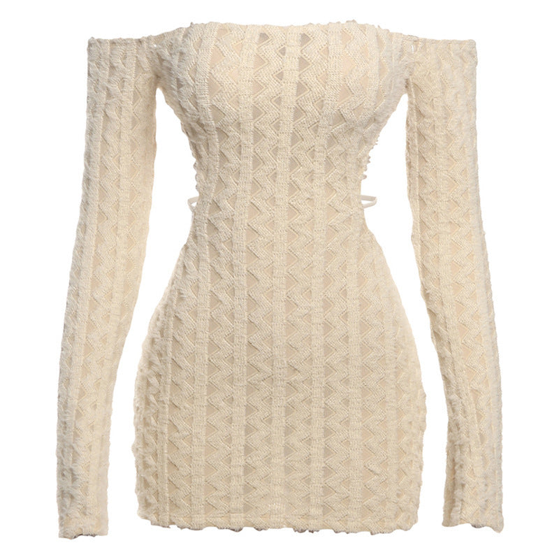 Solid Color High Waist Backless Off-Shoulder Dress – Slim Fit & Elegant Evening Style