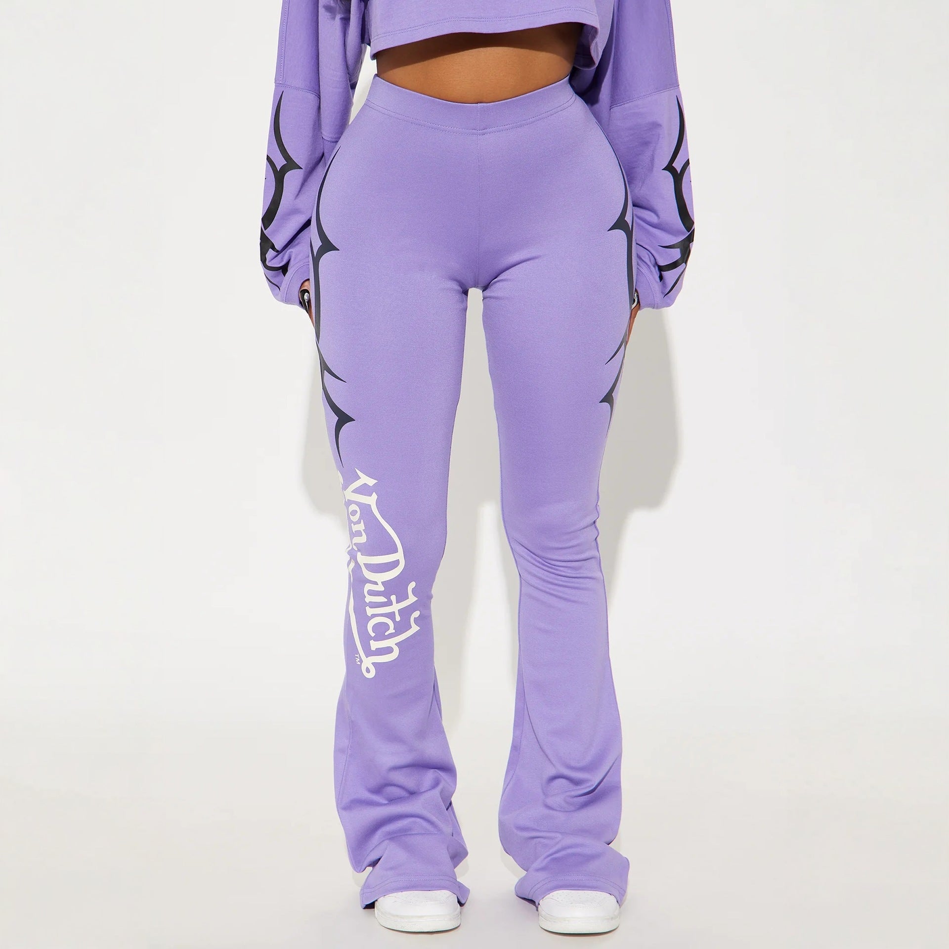 Women’s Casual 2-Piece Set – Solid Color Letter Print Cropped Top & High-Waist Pants | Trendy Streetwear Lounge Set for Everyday Style